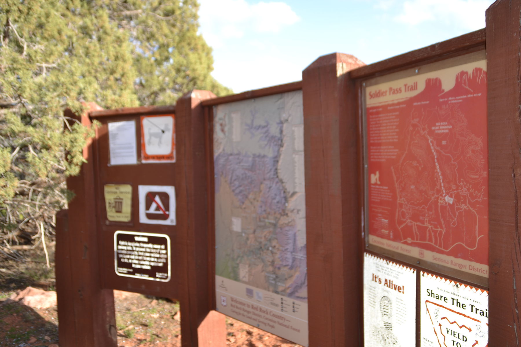 トレイルの入口(trail head)にはこんなかんじのサイnがあり、地図や歩き方の順路が載っています。