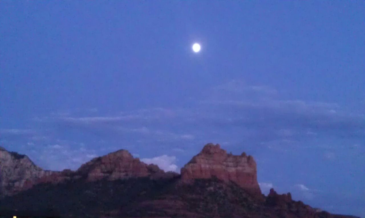 「あっちを見てごらん」と言った瞬間!!!レッドロックからそれはそれは大きな月が昇ってきたのです!私は本当に本当に驚きました。昇っている時にまるで、シューーーーーっと音がしているんじゃないかと思うくらいに本当に滑るようにして大きな白く紫がかった銀色の月が昇っていったのです。あんな月を見たのは、あれが最初で最後です。