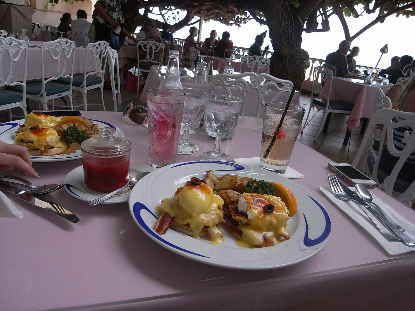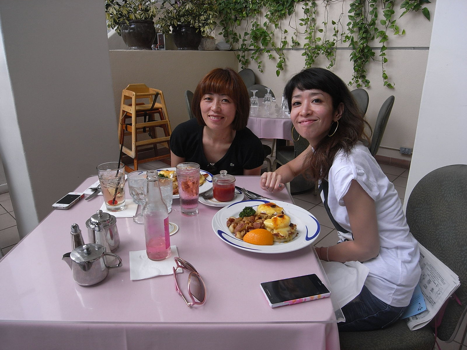 夜遅くに日本を出発し、7時間半。そしてそのままここに来てエッグベネディクトを前にごきげんなわれら。しかも・・・一人づつ同じ皿って!どんだけ食べたいのか!