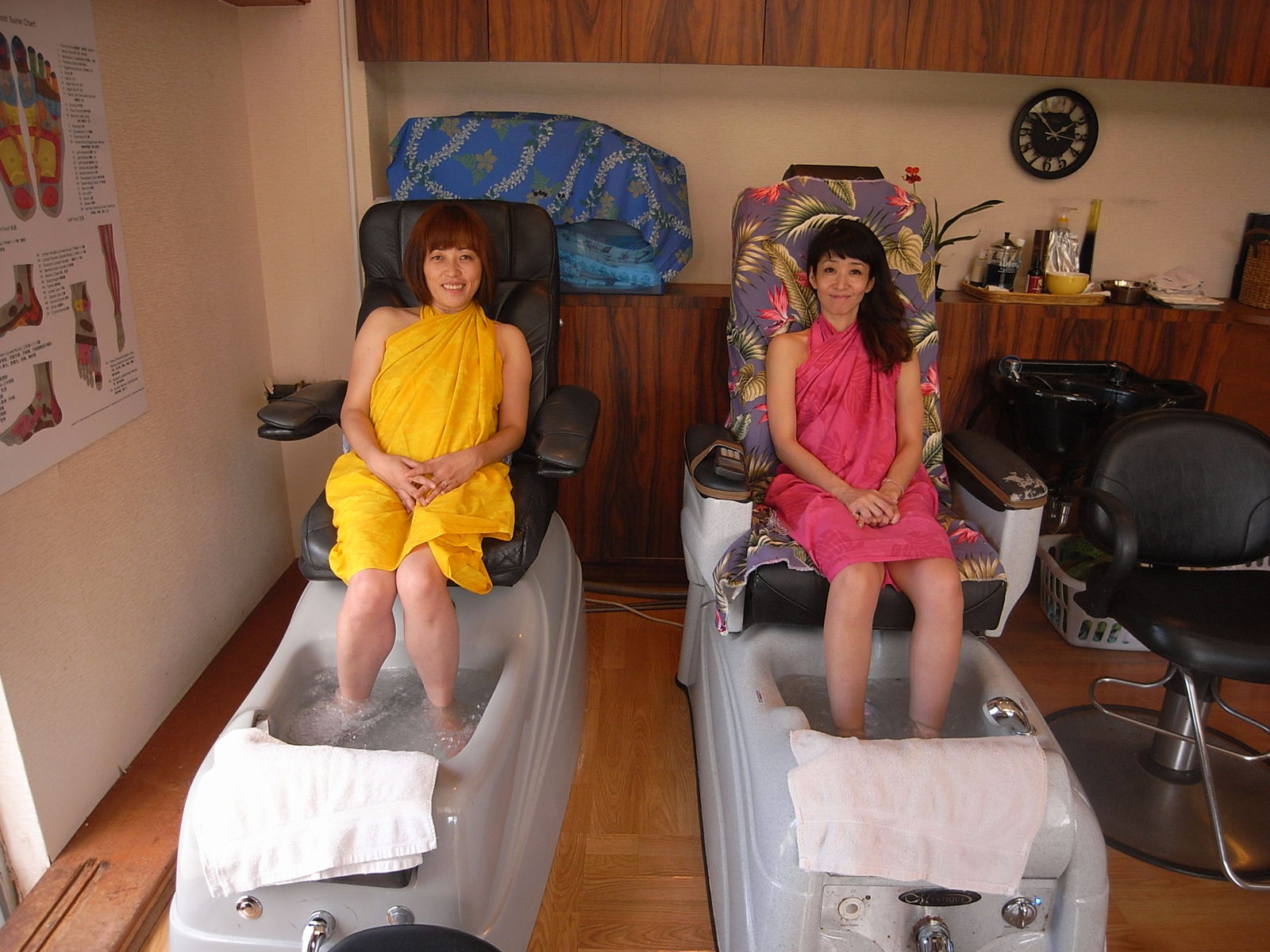まずは、フットバス。あ~~~これだけでも天国に上る心地・・・・荒塩にハーブやエッセンシャルオイルが入ったスクラブでふっとマッサージしてくれます。