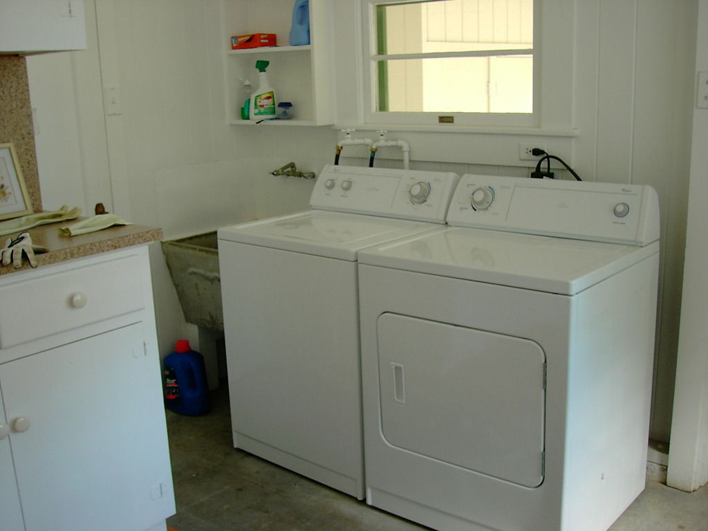 おっきなランドリーでは、思いっきり洗濯もできちゃうし、ひろーいお庭には大きな木と緑の芝生。