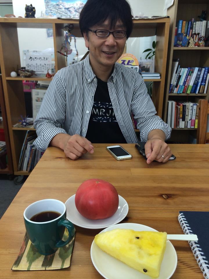 今日は朝からアイポケットさんと作戦会議だったのですが、黄色いスイカとでっかいトマト(これもお客様からのもらいもの!)をお茶のお供に・・・・
