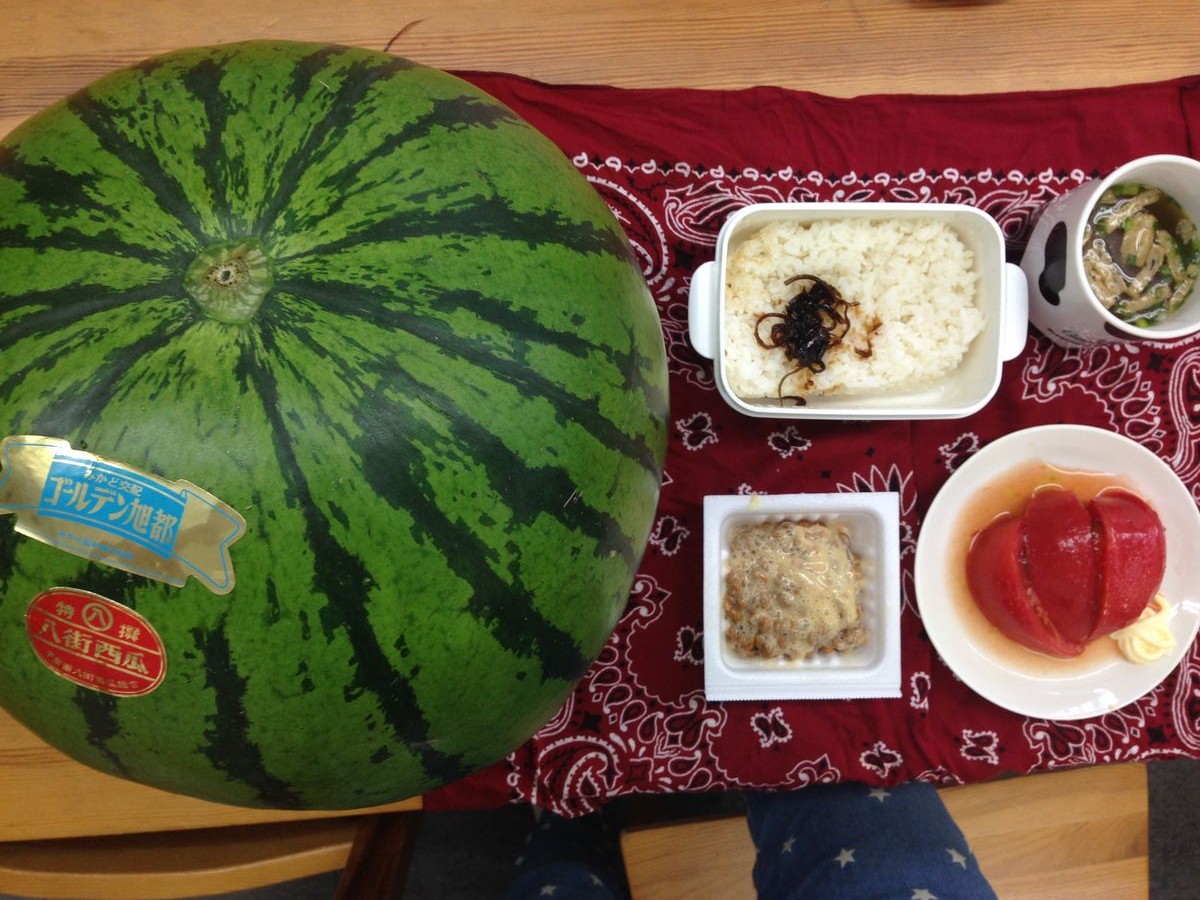 それにしてもこの巨大スイカ、実は初物だったらしいのですよ。初物は寿命が延びると言われているらしいので、またまた寿命を延ばさせていただきました。