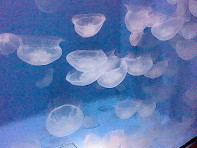 クラゲ=白というイメージなので、色が付くと、何か作りものに見えてしまいますね。