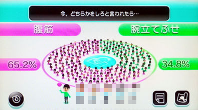 腹筋 = 65.2% VS 腕立て伏せ = 34.8%
