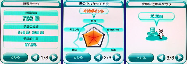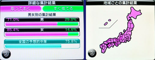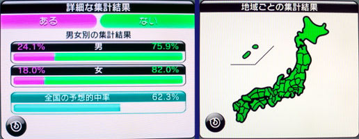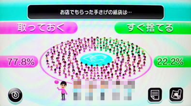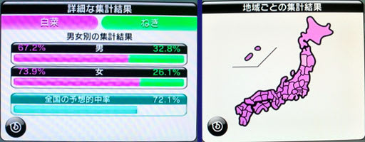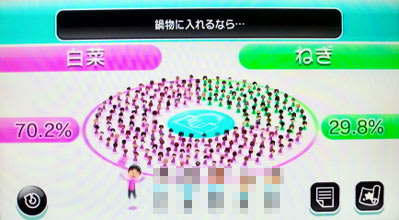 Wii「みんなで投票チャンネル」は、ゲームとは関係ないですが、こういうもので地域別や男女の感覚の違いとかが見えて、誰でもそこはかとなく楽しめるものです。話題にもなりますしね。