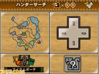 ・『モンスターハンターポータブル 3rd』にあった「予備ポーチ」のシステムは、今作にはありません。本来3ページぶんまでしかアイテムが持てないところを、フィールドにいる時のみ4ページ目が増えるというものでした。