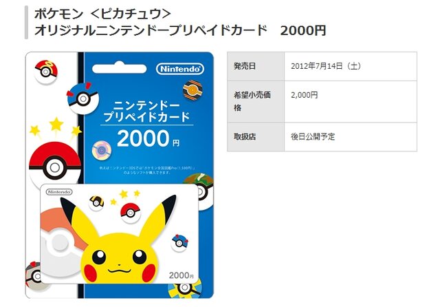 ピカチュウがデザインされた2,000円分のプリペイドカードは、7月14日(土)に発売予定。