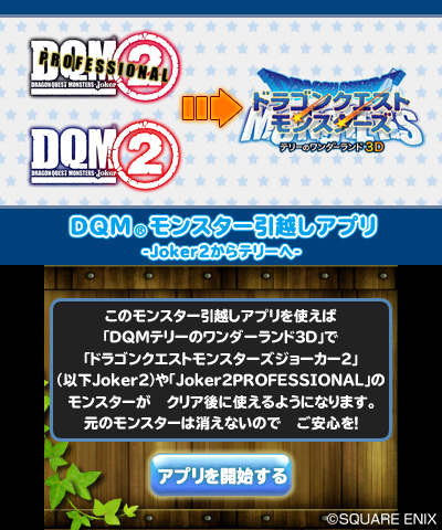ゲームソフトに同梱されているコードを「ニンテンドーeショップ」に入力することで、『DQM モンスター引越しアプリ』というものがダウンロードできます。