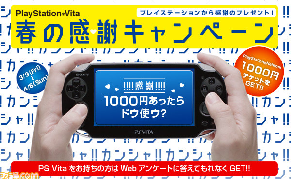 ●= 1000円分のPSNチケットがもらえる“PlayStation Vita 春の感謝キャンペーン”がスタート =●(以上、全て9日の情報です)