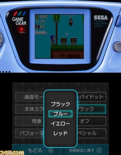 上画面にはしっかりとゲームギア本体のグラフィックも。予想ですが、立体視で厚みとかもしっかり表現されていそうな気がします。