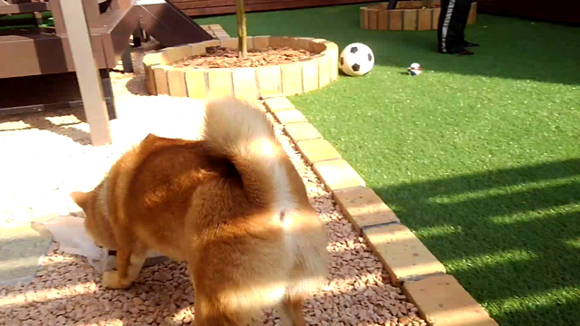 人工芝のドッグランでヒロくんが走る