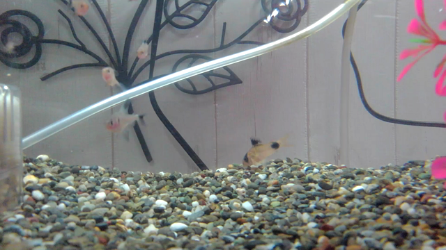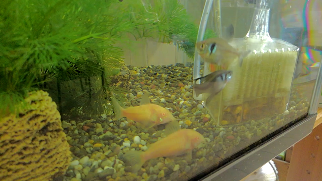 逆さまになって餌を食べるプレコ