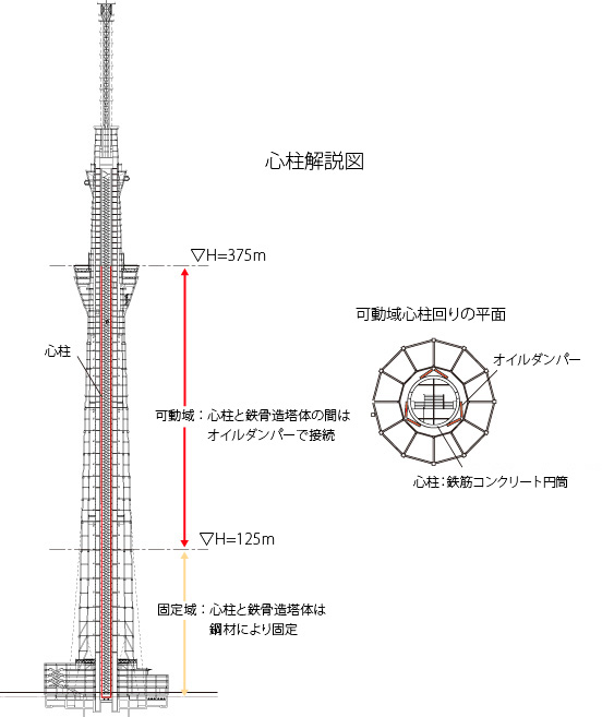 詳しくは日建設計 東京スカイツリー構造紹介をご覧下さい。