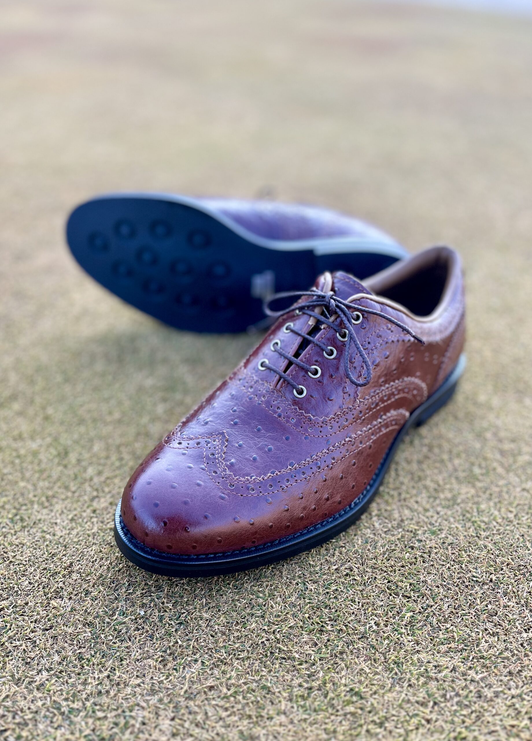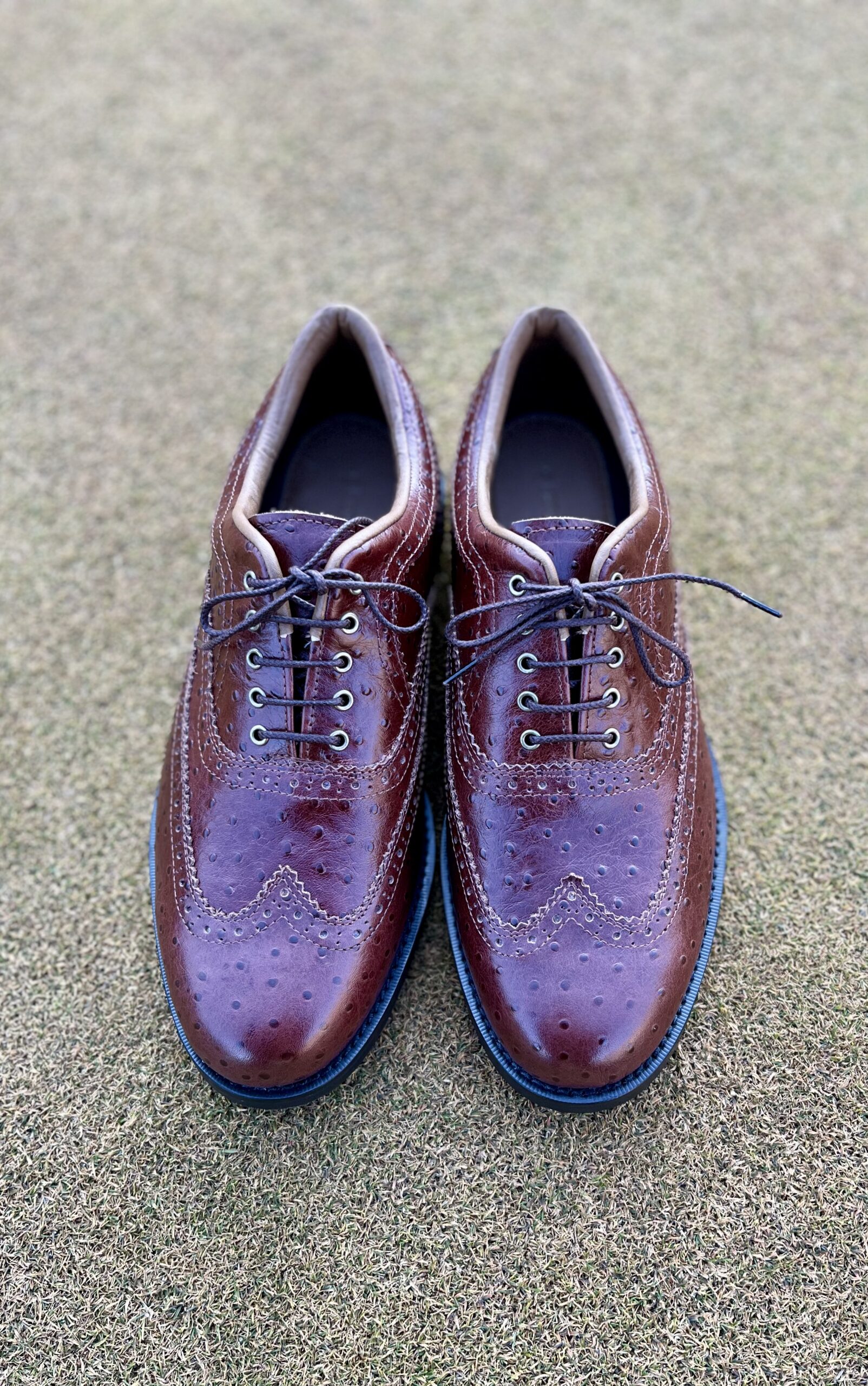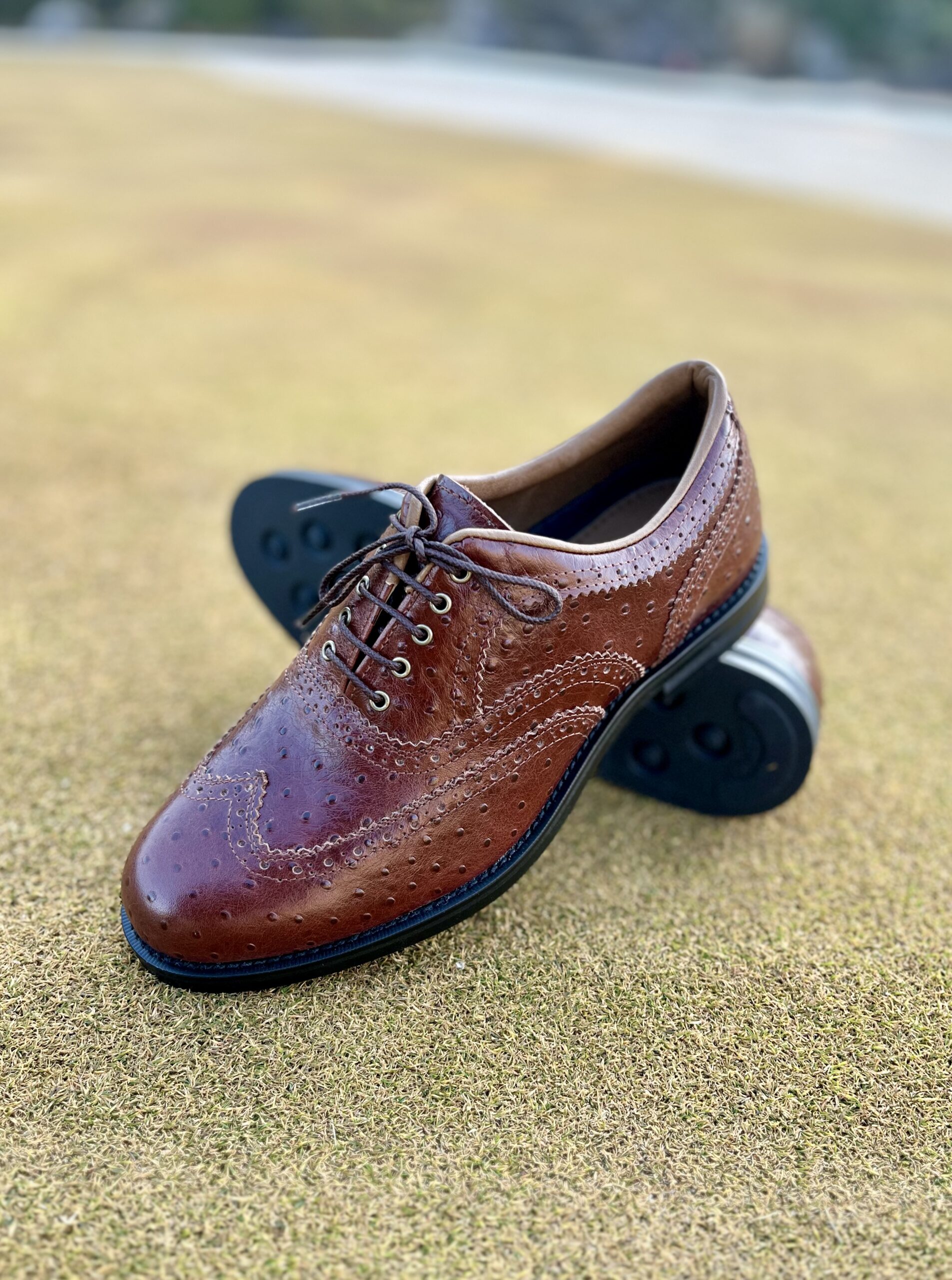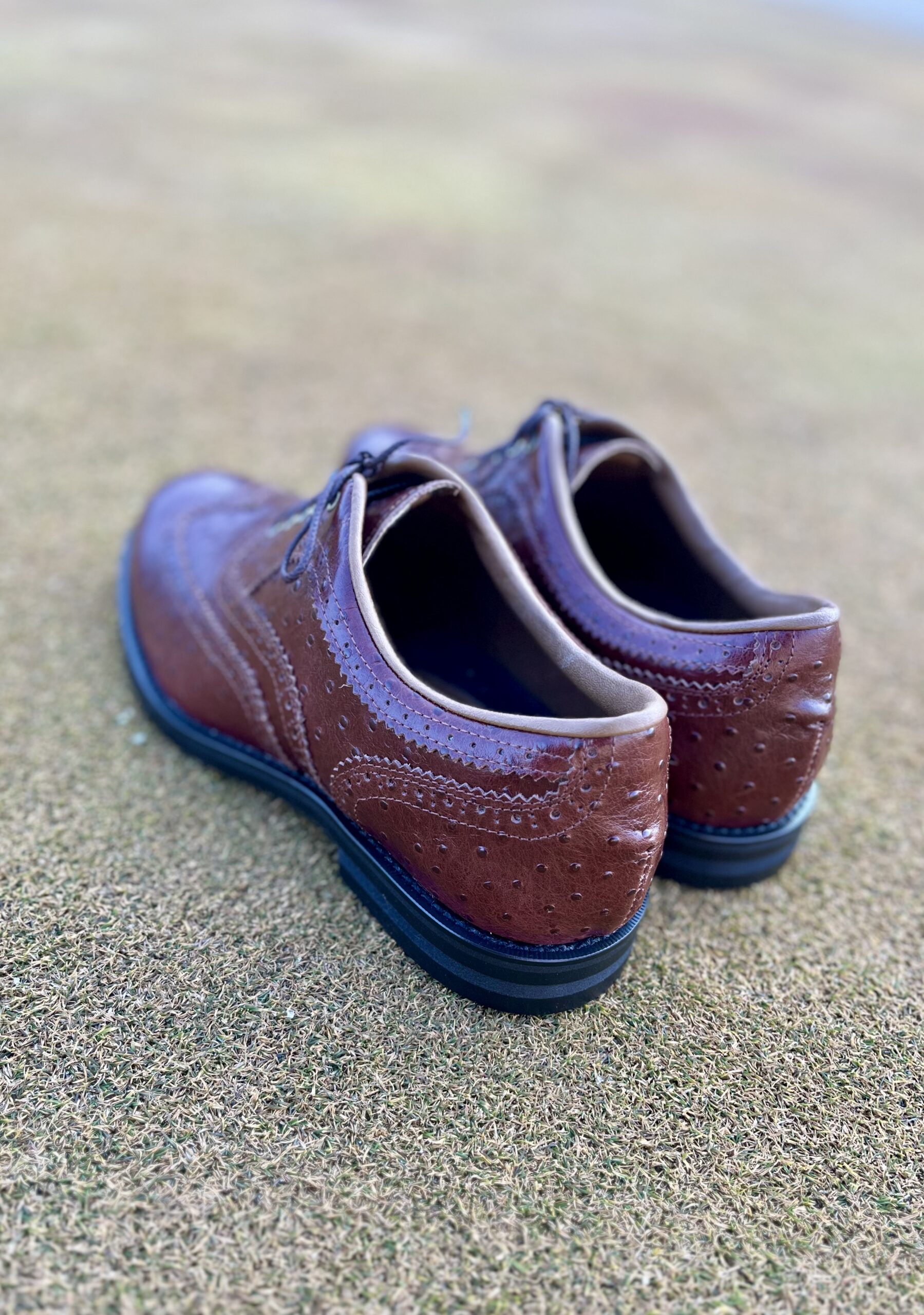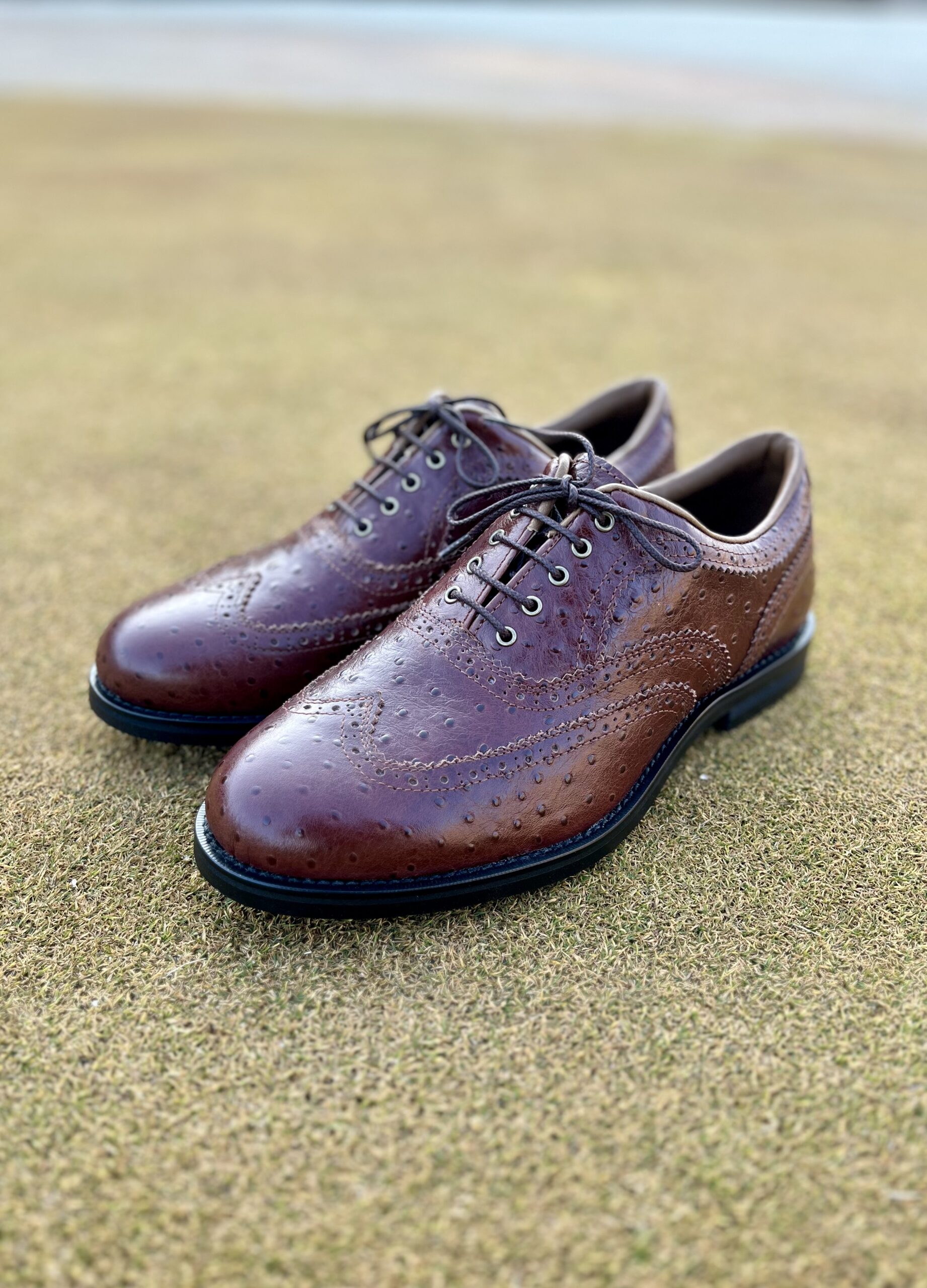 53ゴルフシューズNoble Proオールブラウンのオーストリッチ型押しでございます。