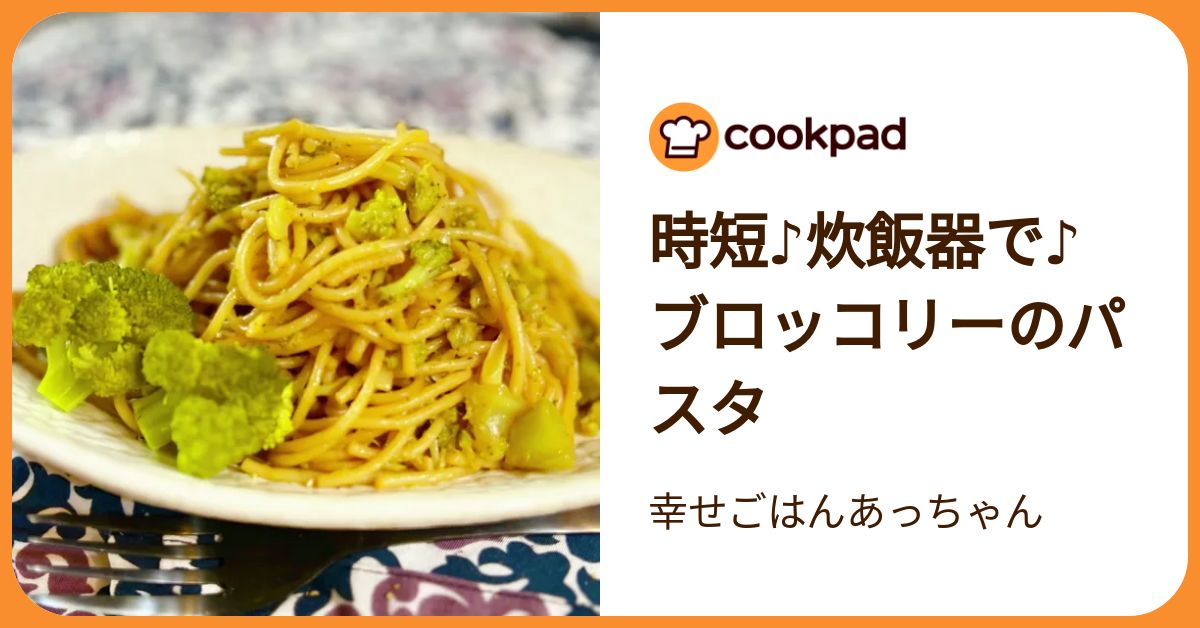 時短♪炊飯器で♪ブロッコリーのパスタ by 幸せごはんあっちゃん「時短♪炊飯器で♪ブロッコリーのパスタ」の作り方。炊飯器に材料入れて、スイッチポンのお手軽パスタ!ニンニク醤油で、タンパク質豊富なブロッコリーを美味しく料理しちゃお! 材料: スパゲティ、塩、水cookpad.com
