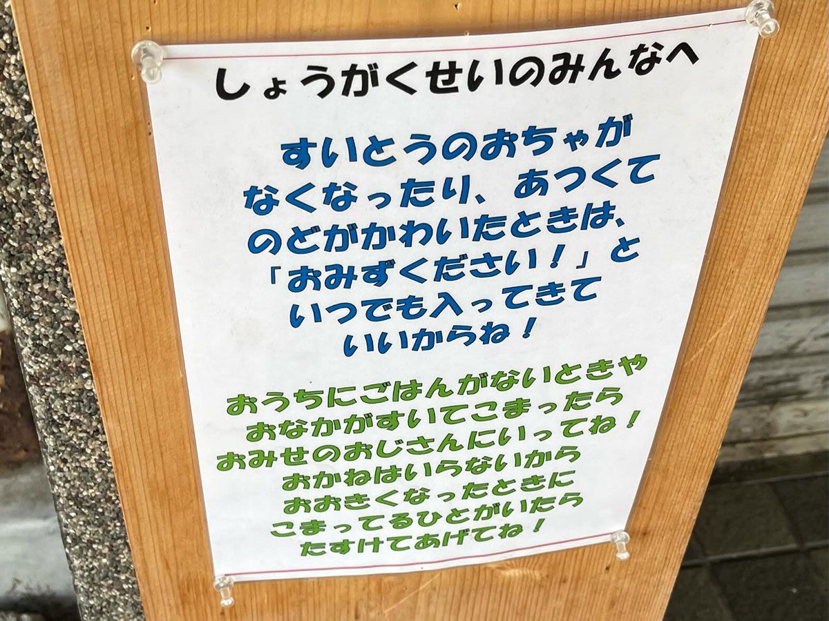 染みますねーhttps://trilltrill.jp/articles/4127241ラーメン店の低い位置に貼られた紙に「胸に染みる」「最後の一文が素敵」 | TRILL【トリル】飲食店には、おすすめのメニューや注意事項など、さまざまな貼り紙がしてあります。「どれ…trilltrill.jp一般家庭には、なかなか入りにくいですが、ラーメン屋さんになら、水をもらいに入れるかもしれませんね。これからの時期は、熱中症の心配があります。飲食店ならではのサービスですね。