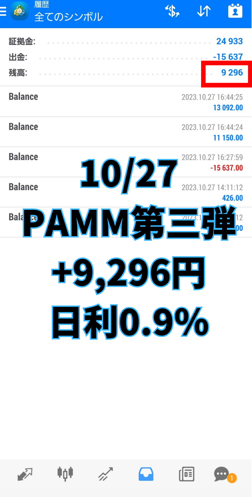 2023年10月27日「EA・PAMM運用実績」 | EA副業で働かずに稼げるようになった元ガテン系の物語