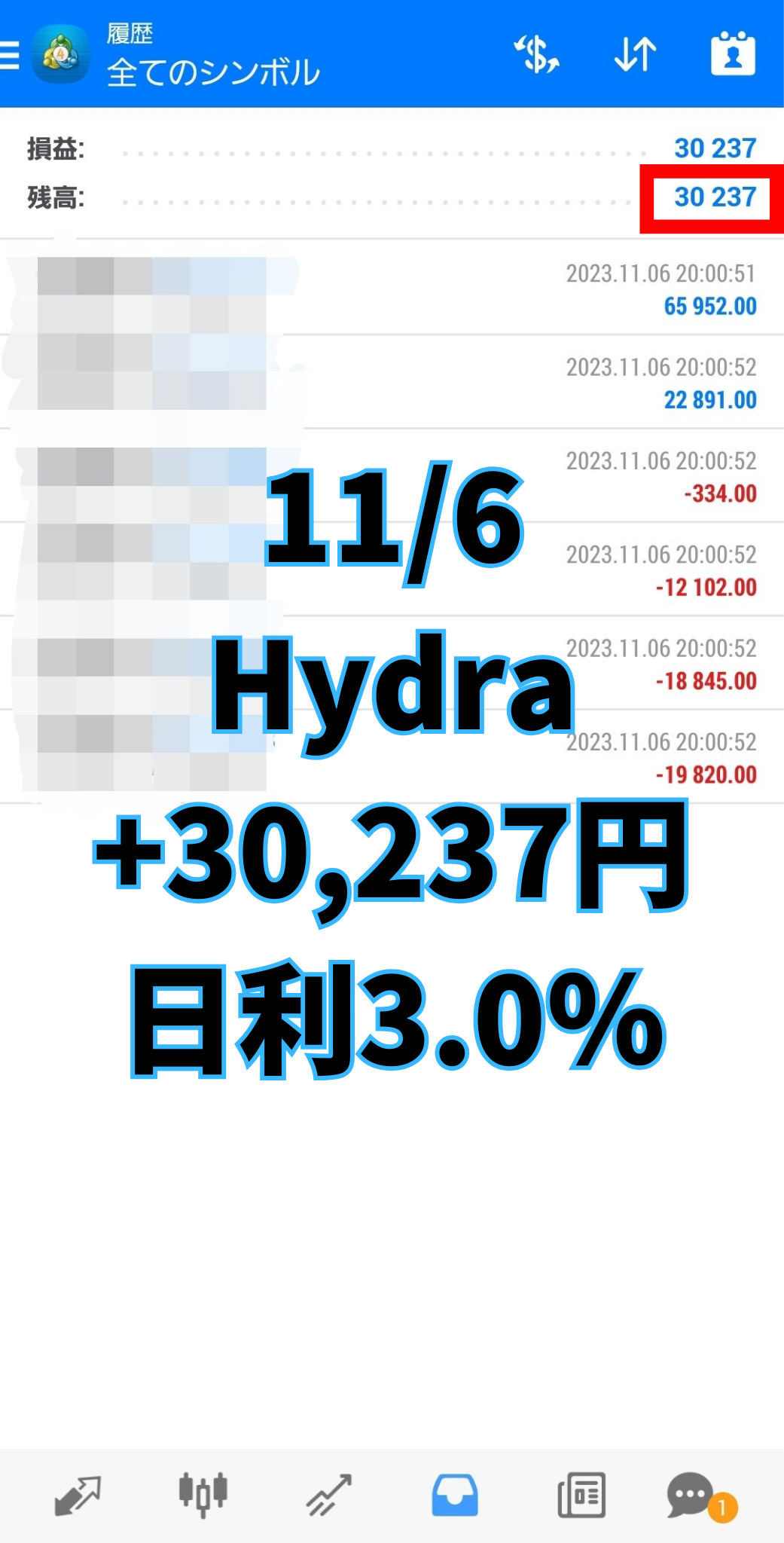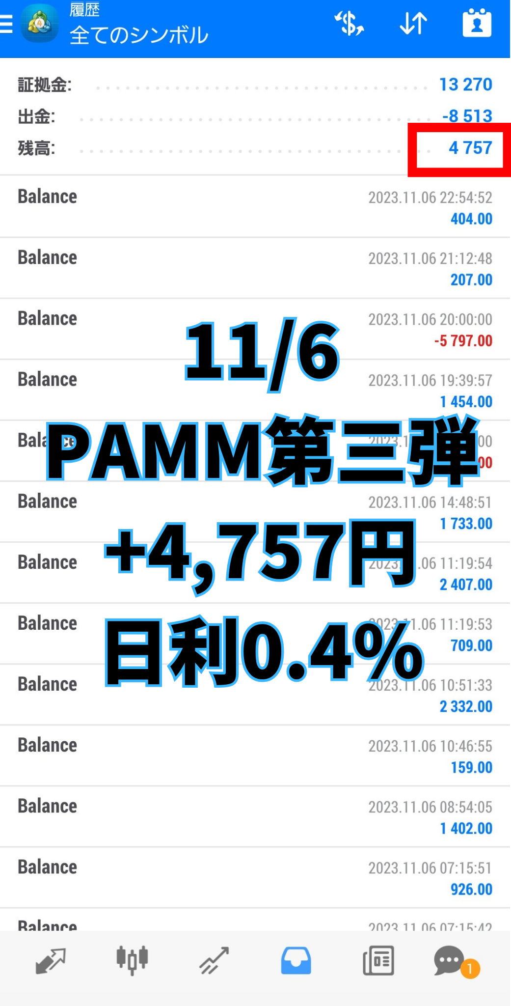 2023年11月6日「EA・PAMM」の運用実績 | EA副業で働かずに稼げるようになった元ガテン系の物語