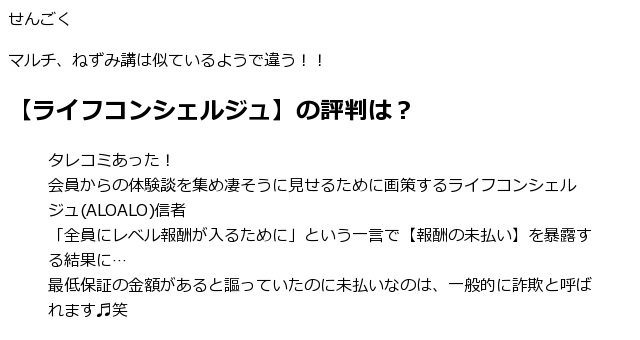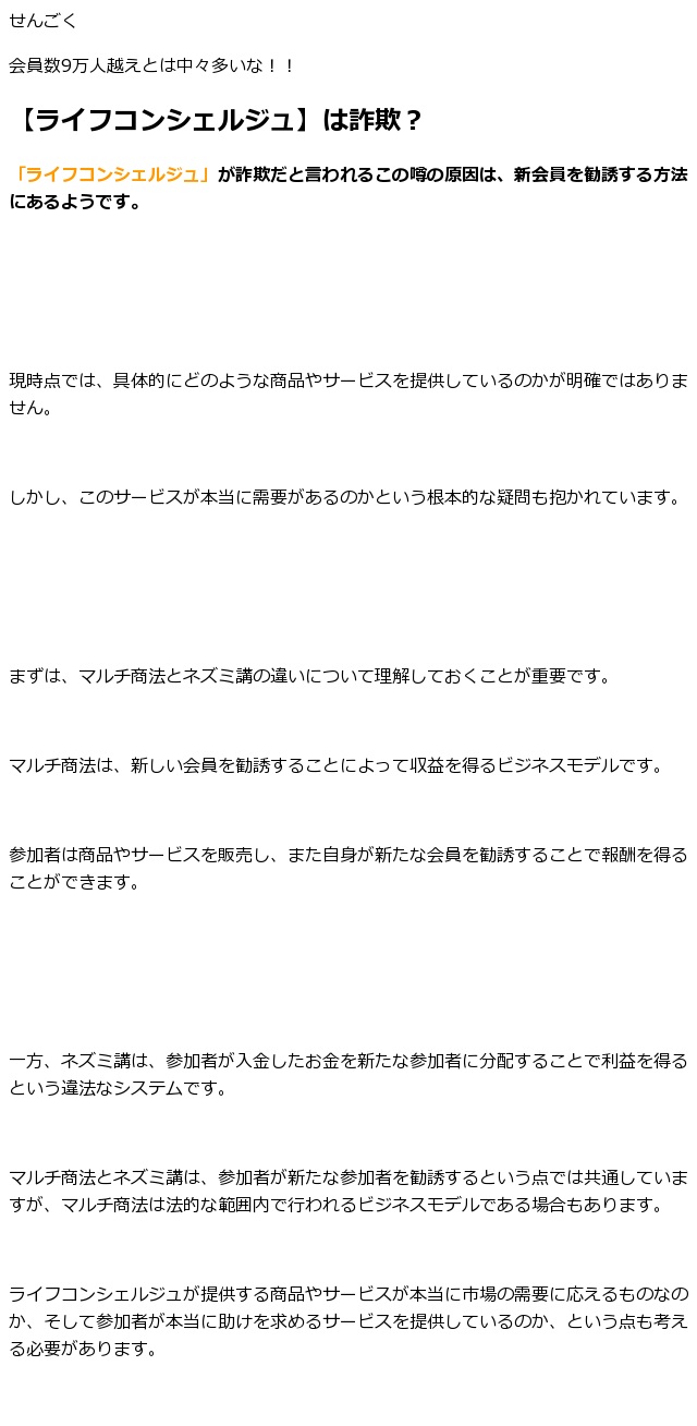 【ライフコンシェルジュ】詐欺なのか?評判を徹底的に調べてみた#マルチ商法 pic.twitter.com/6mtfLBWb3GNovember 15, 2023#拡散希望 #ライフコンシェルジュ pic.twitter.com/5dLHz7cVWTAugust 29, 2023#拡散希望RT協力お願いします #ライフコンシェルジュ https://t.co/F4oM339IkXAugust 29, 2023