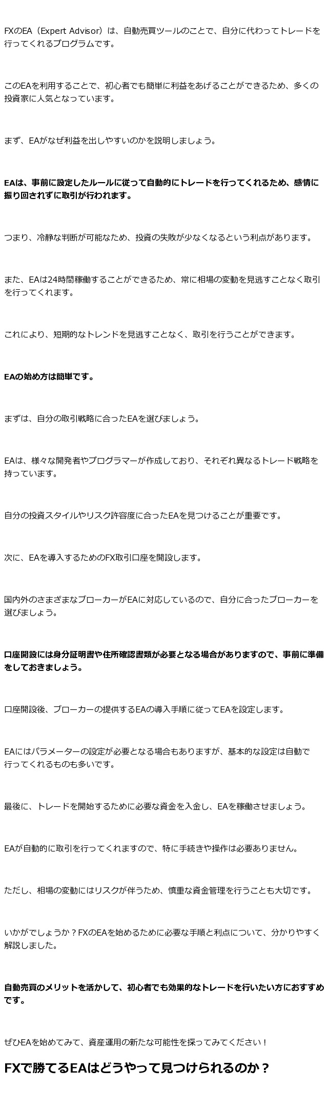 ・「Unicorn(ユニコーン)EA」という名前だけ聞いたけど、ぶっちゃけFX初心者だからよく分からん。わかりやすく解説して!