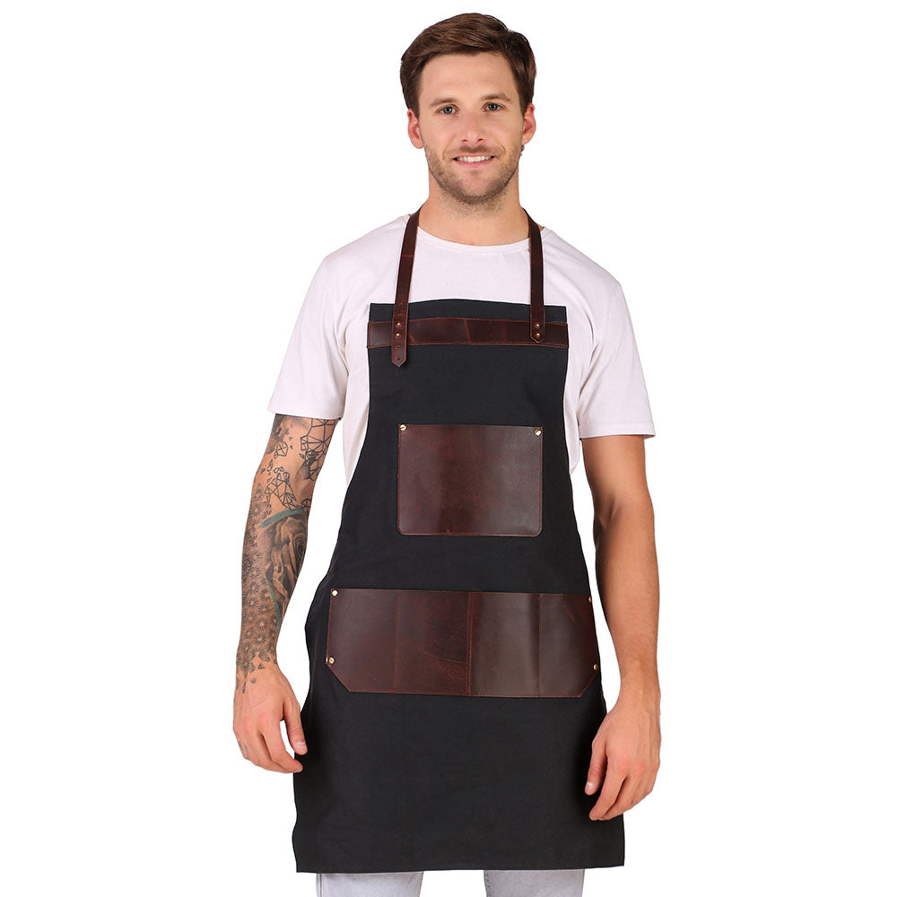 A durable, cross-back apron with deep pockets and heat-resistant fabric.
