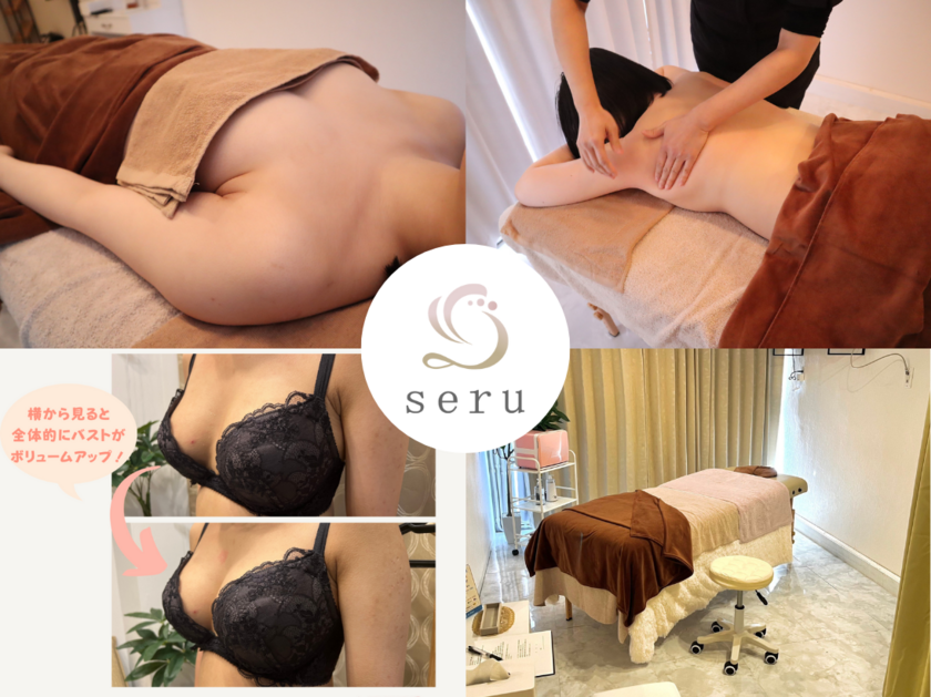 美乳サロンseruは、バストアップ/下垂バスト解消/離れバスト解消/左右差バスト改善など、胸に関するお悩みを抱える女性の根本を解決するべく、新しく誕生した美乳サロンです。