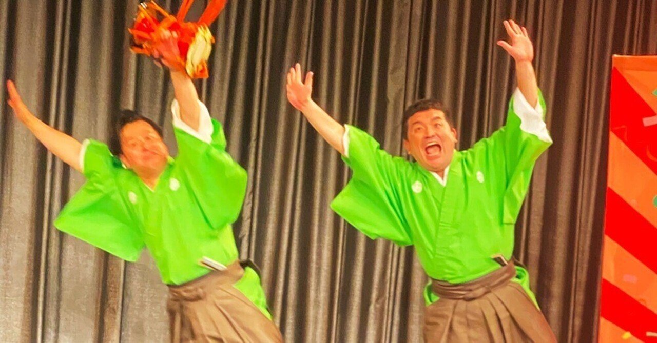 黄緑色のお着物での漫才・コントはなかなか珍しくて、華やかでした!