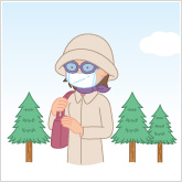 帽子・メガネ・マスク・マフラーを身につけて。コートもツルツルした素材を選びましょう。
