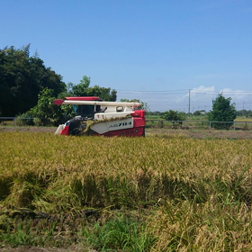 稲刈りの終わりと青い助っ人