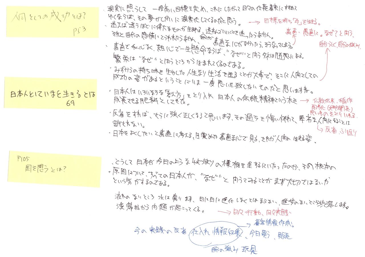 (人間としての成功とは?)……現実に照らして一段高い目標を定め、これにしたがって日々の仕事を着実にすすめてゆくならば、その夢がしだいに現実化してくるのだと思う。