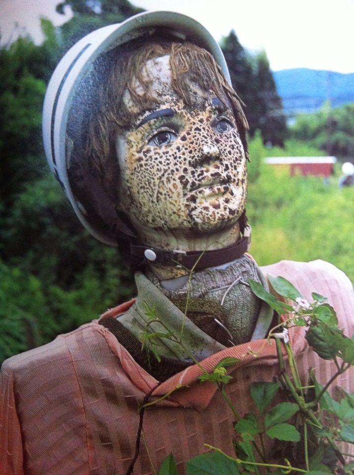 本書の大半は”案山子の写真”です。しかも、文字なし……です。これでもか!! ってくらい案山子が出ています。案山子と一口に言っても様々な形があり、昔ながらの藁づくりで顔がへのへのもへじの案山子があれば、かなりリアルな造りにしている案山子があったり、生首的な案山子があったり(デビルマンを思い出してしまう……)、全国の案山子選手権を開いたらいいんじゃないか? なんて思っていました。