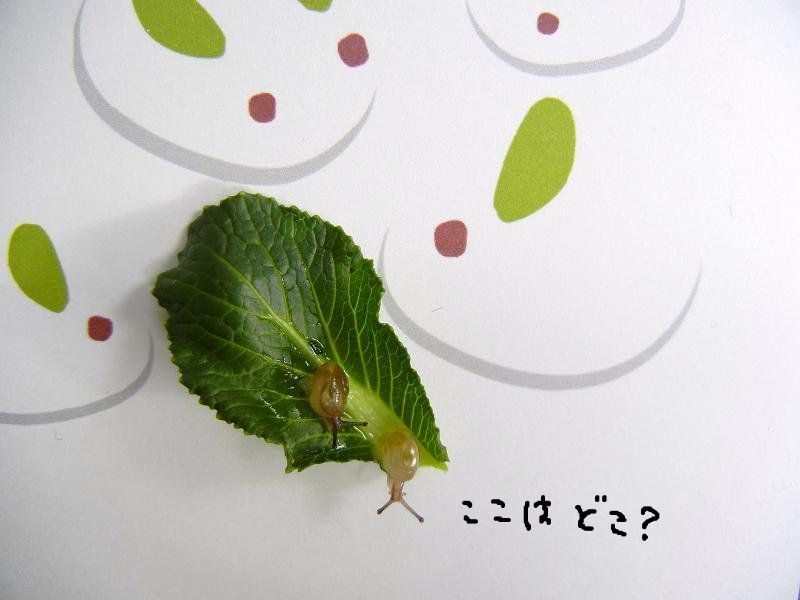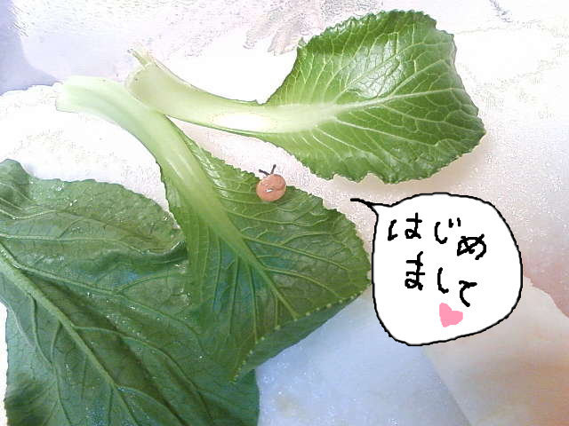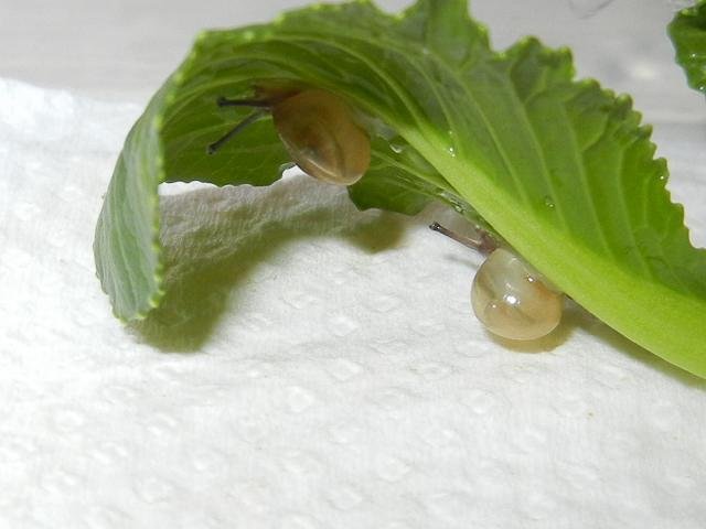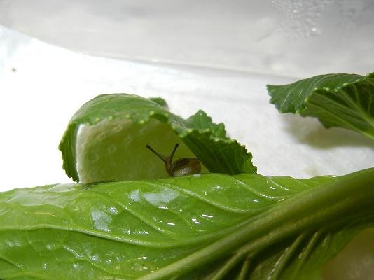 ケースに戻して、きれいな小松菜を入れてあげると、すぐに元気になって動き出しました。