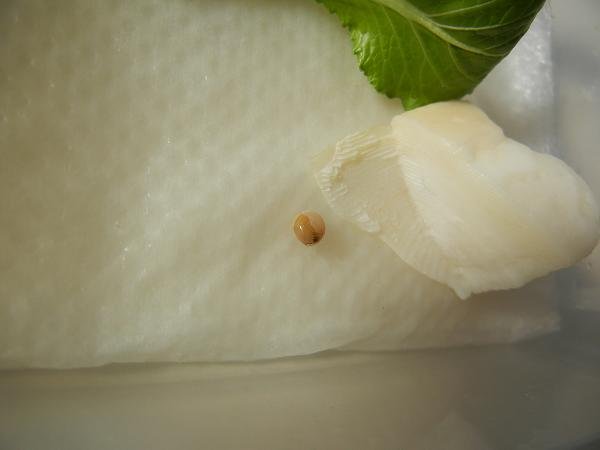 小松菜の根元の方にくっついていたのを思い出したからでした。