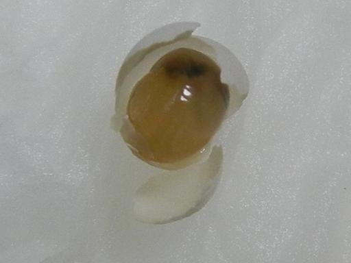 1カ月経っても何の変化も無かった卵ですが、その中の3粒の色が黒っぽく変化していました。
