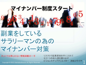 お待たせしました!昨日お伝えしたとおりあなたに贈るプレゼントは「副業をしているサラリーマンの為のマイナンバー対策」です。このPDFプレゼントを入手する方法は・・・Facebookにてリンクを張りますのでそちらからお受け取り下さい。安心して下さい。無料です!気になる配布開始は・・・明日の朝6時です。是非、お見逃しなくお受け取り下さいね。あともう少しお待ち下さい。これを受取ればあなたの副業が会社にバレるリスクが軽減されます。是非ご活用下さい。