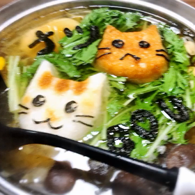 喉の痛みには大根おろしよね☆ という事で、大根おろしアートで「みぞれ鍋」をば