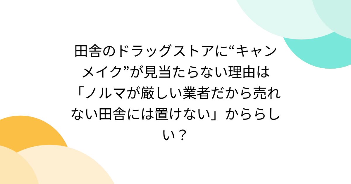 田舎のドラッグストアに“キャンメイク”が見当たらない理由は「ノルマが厳しい業者だから売れない田舎には置けない」かららしい? - Togetter [トゥギャッター]