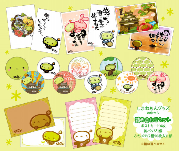 しまねもんグッズ詰め合わせ(ポストカード4枚・缶バッジ1個・ぷちメモ 1部)