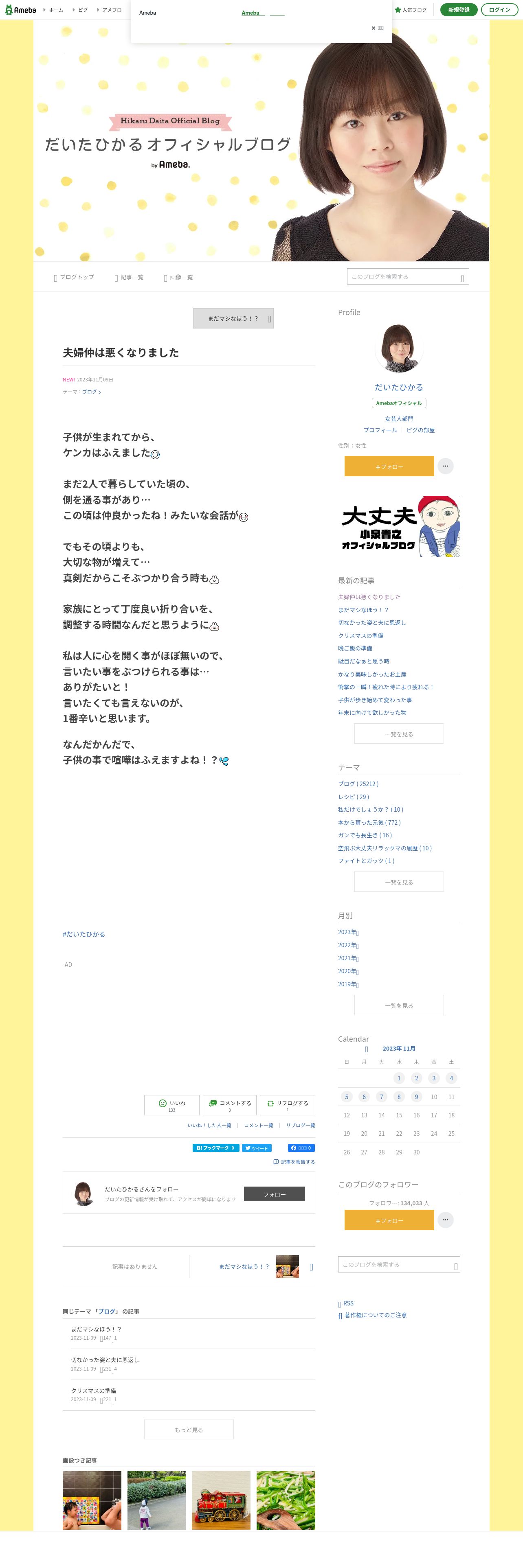 【魚拓】夫婦仲は悪くなりました | だいたひかるオフィシャルブログ Powered by Amebahttps://ameblo.jp:443/daitahikaru-blog/entry-12828015651.html - 2023年11月9日 22:20 - ウェブ魚拓megalodon.jp
