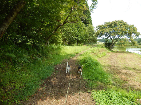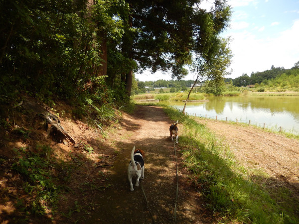 この公園犬が散歩できる場所に制限があって全く日陰のない先ほどの広い所と この池の周りだけなんですよね。山の中にも色々とコースがあるんですが、入れないんですw そこもちょっと残念ですねwww