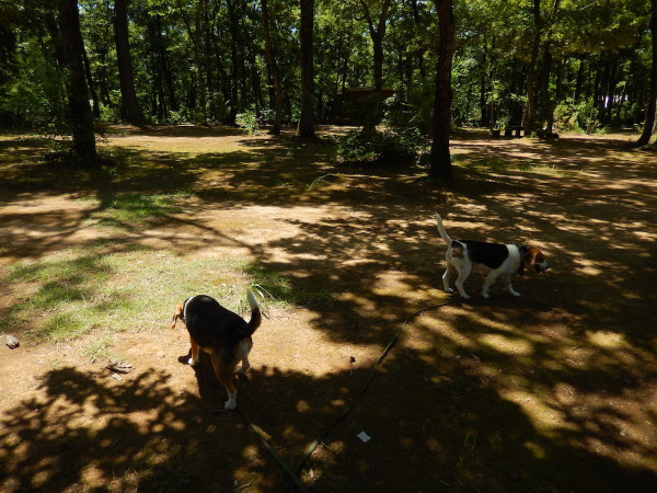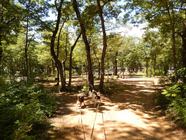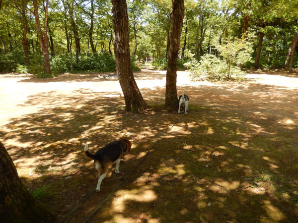 朝の散歩の時は薄曇りだったので、海にでも連れて行こうかと思っていたのですが、どんどん雲がなくなりドピ〜カンに! なのでいつもの森林公園に行き先変更w