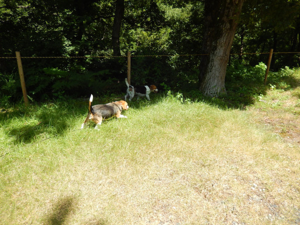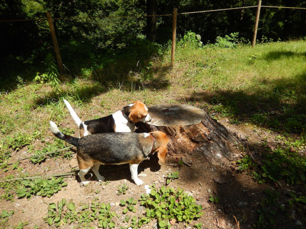 切り株をクンクンっ 暫くクンクンしてた八兵衛となな。