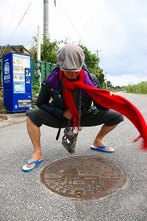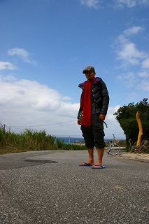 上はダウンでマフラーなのに下はハーフパンツで足は島ぞうり・・・。
