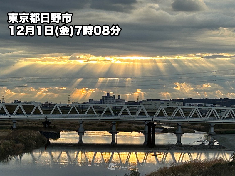 今日、東日本でエンジェルラダーこと天気の梯子が見られたそうです。