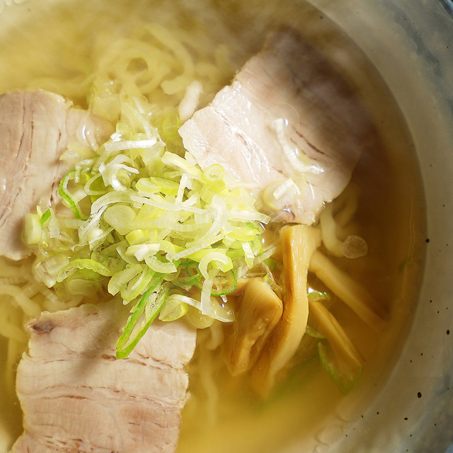 スープは鶏ガラ等の清湯スープ、山塩を合わせて。