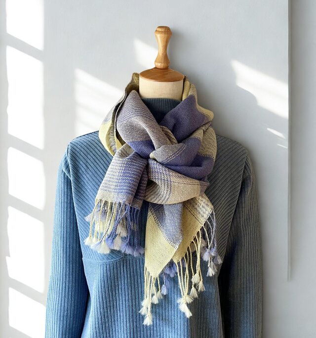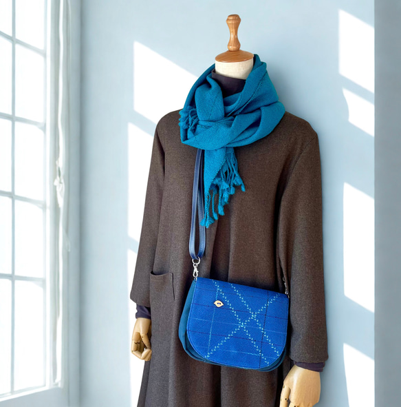 <鮮やかブルーのポシェットとストール>