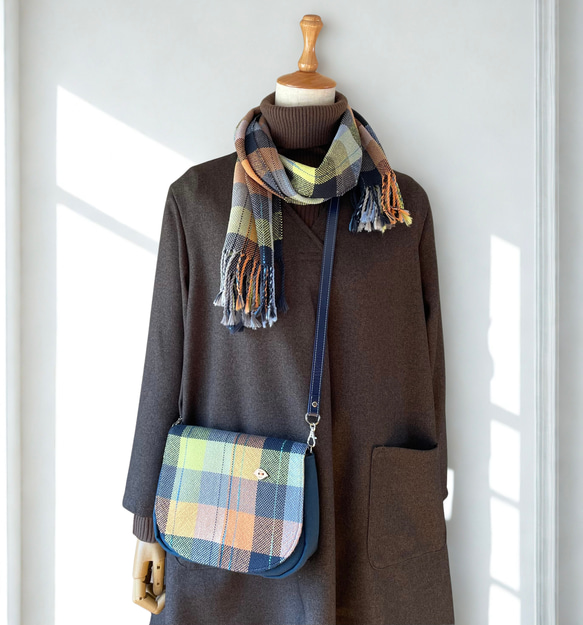 <マルチカラーのポシェットとストール>