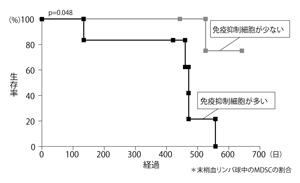 免疫抑制細胞の量が多い人のほうが明らかに生存率が悪いという