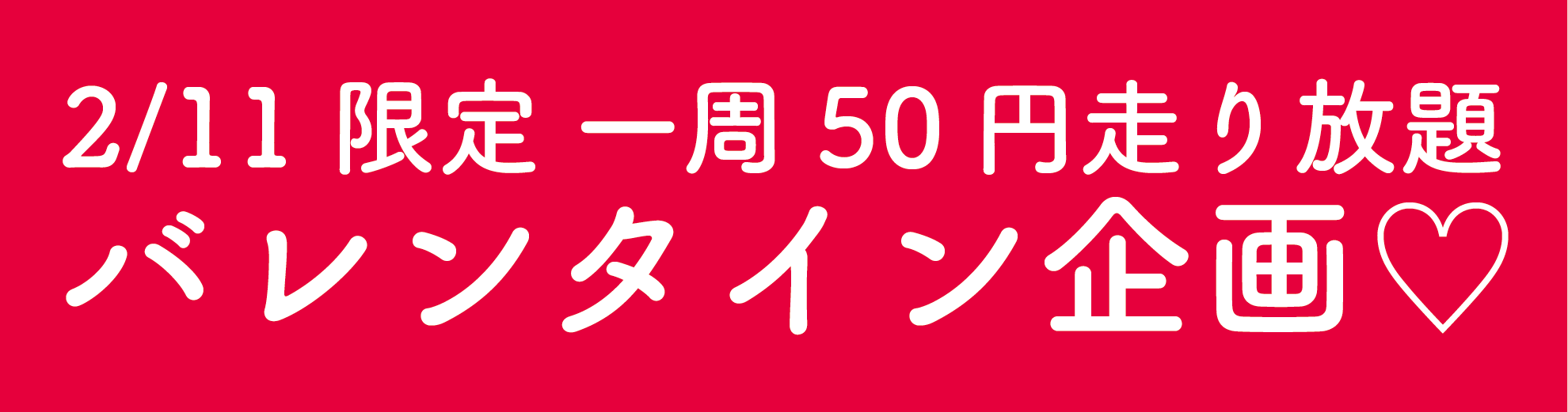 突然ではありますが、2月11日限定 バレンタイン走り放題 特別企画を致します。